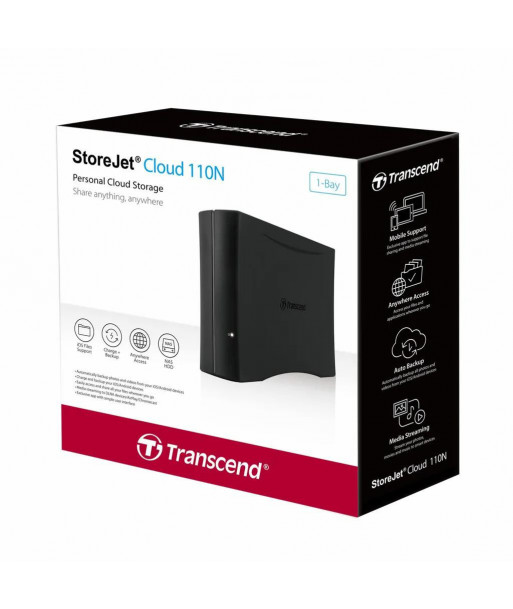 Transcend StoreJet Cloud 210N. Total installed storage capacity: 8 TB, Installed storage drive type: HDD, Supported storage drive types: HDD. Processor family: ARM, Processor model: Cortex-A7, Processor frequency: 1.1 GHz. Internal memory: 512 GB, Internal memory type: DDR3. Ethernet LAN data rates: 10,100,1000 Mbit/s. Chassis type: Compact, Product colour: Black